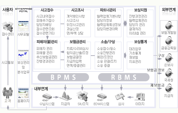 ÅëÇÕº¸»ó ½Ã½ºÅÛÀº º¸Çè»ç°í ¹ß»ý½Ã °è¾àÁ¶°Ç¿¡ µû¶ó Àû¹ýÇÑ ÀýÂ÷¿¡ ÀÇÇÏ¿© º¸»ó¼ºñ½º¸¦ Á¦°øÇÏ´Â ±â¹ÝȰµ¿À¸·Î½á, Àå/´Ü±âº¸»óÀü·«À» ¼ö¸³ ¹× º¸»óÀü·«ÀÇ ¼öÇàÀ» À§ÇÑ ¼¼ºÎÁöħ ¹× ¿î¿ë ¾ÈÀ» ¼ö¸³ÇÏ°í º¸»óó¸® °á°ú Æò°¡ ¹× Çù·Â¾÷ü °ü¸®¸¦ À§ÇÑ º¸»ó±âȹ±â´É, º¸»óó¸®Áöħ¿¡ ÀÇÇØ »ç°íÁ¢¼ö, ¼ÕÇØÁ¶»ç, ¼ÕÇØ»çÁ¤À» ÇÑ ÈÄ º¸Çè±ÝÀ» Áö±ÞÇÏ´Â º¸»ó󸮱â´ÉÀ¸·Î ±¸¼ºÇÕ´Ï´Ù.